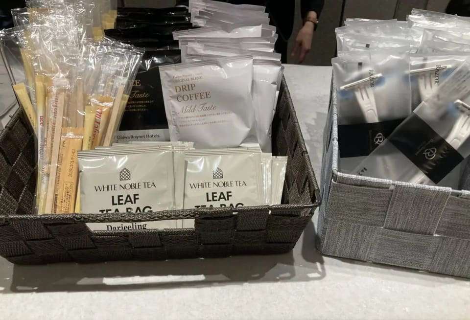 歯ブラシセット、ヘアブラシ、カミソリ、綿棒、ボディタオル、コーヒー、紅茶、お茶、入浴剤