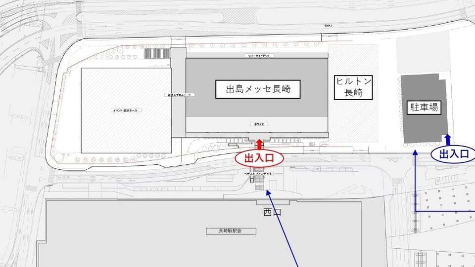隣接する出島メッセ長崎駐車場の利用になります。