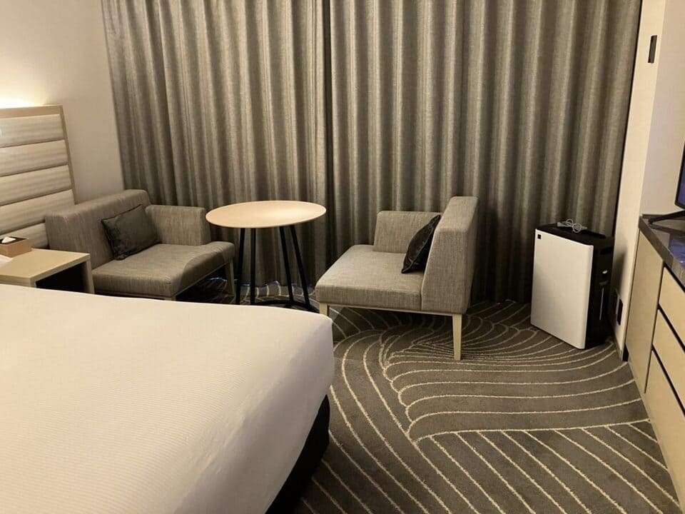 眺望は良いのだけど西日が強いので、チェックイン時はカーテンは閉まっていました。