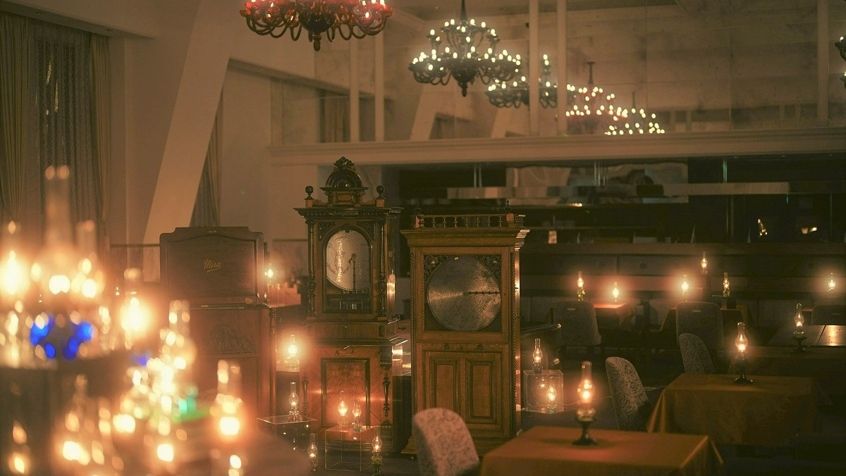 豪華なシャンデリで飾られた空間で時間毎に特徴ある飲食が楽しめます。